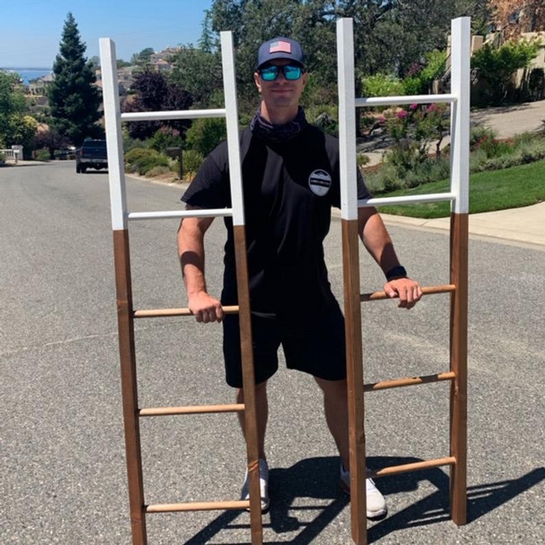 Here is our current best seller that is now available to be shipped anywhere in the USA! We offer a variety of stain options to pair with a white top. This blanket ladder is great for blankets, scarves, and everything in between.